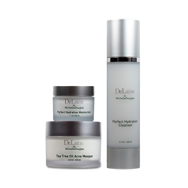 Perfect Hydration Cleanser will balance the skin and add hydration while soothing irritated skin. Tea Tree Oil Masque works beautifully as a spot treatment for Rosacea or breakouts and can be used on the entire face for light exfoliation and refinement.